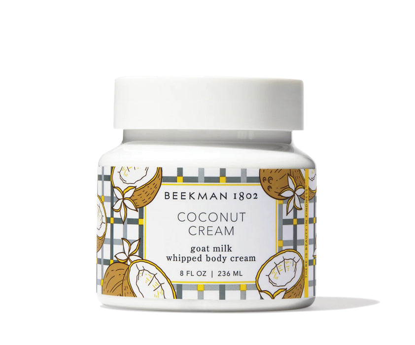 Coconut Cream is lusciously scented with real coconut milk and vanilla blossoms and is safe for the most sensitive skins. Incorporates soothing goat milk, which has the same pH as our skin and just soaks right in.